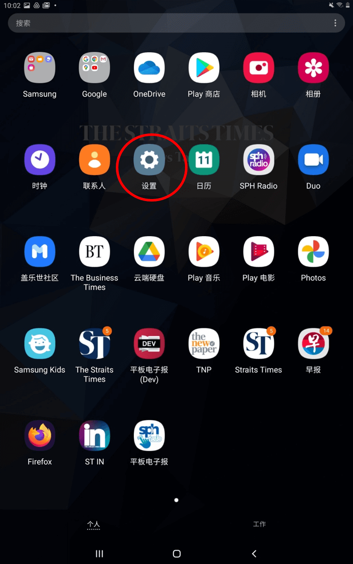第一步:向上滑动以显示所有应用程序。点击进入 “设置” 应用
