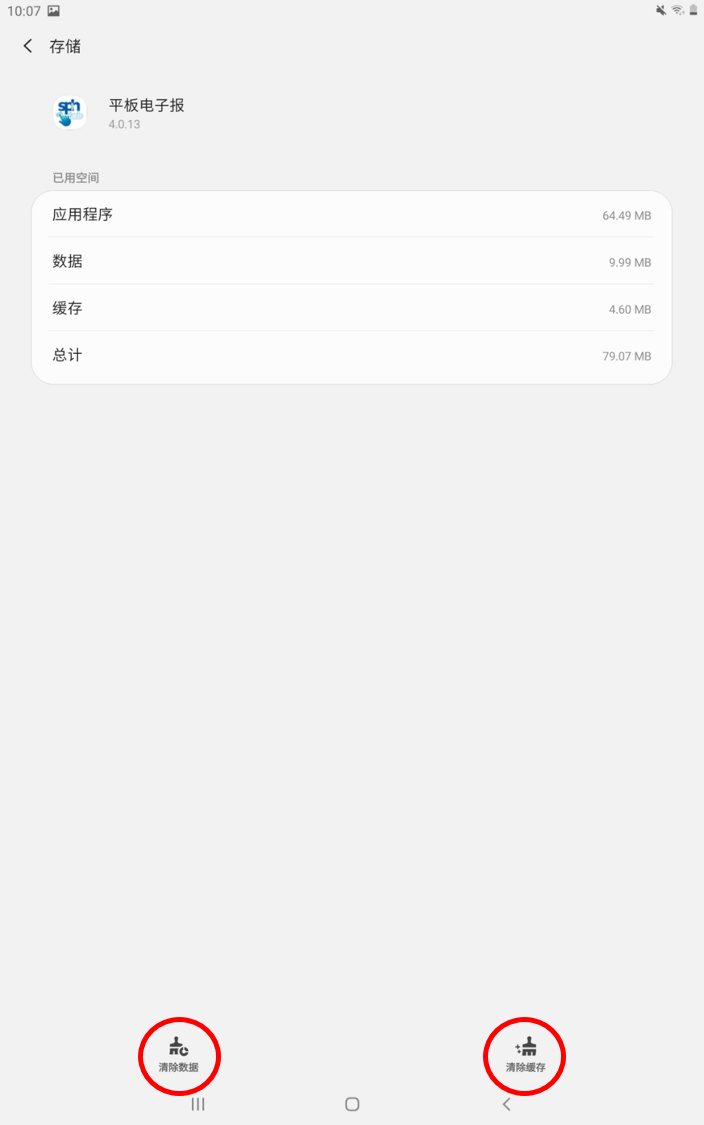第五步:您会看到以下屏幕。点击屏幕底部的 “清除数据” 和 “清除缓存”,搞定!重新启动”平板电子报“应用程序,成功登录就能立即阅读。